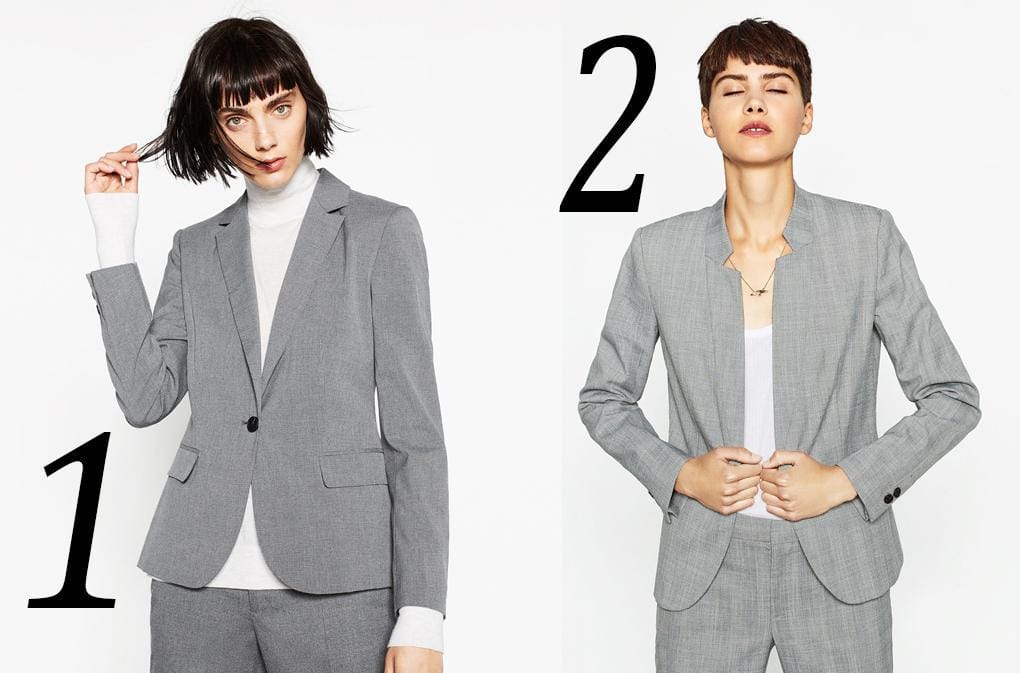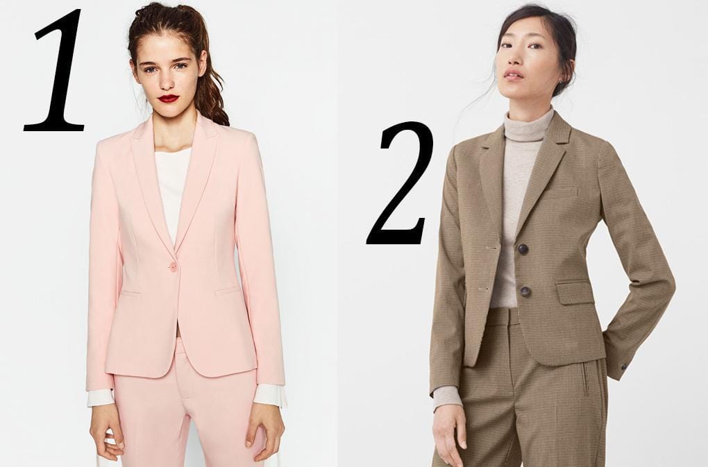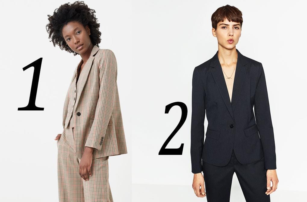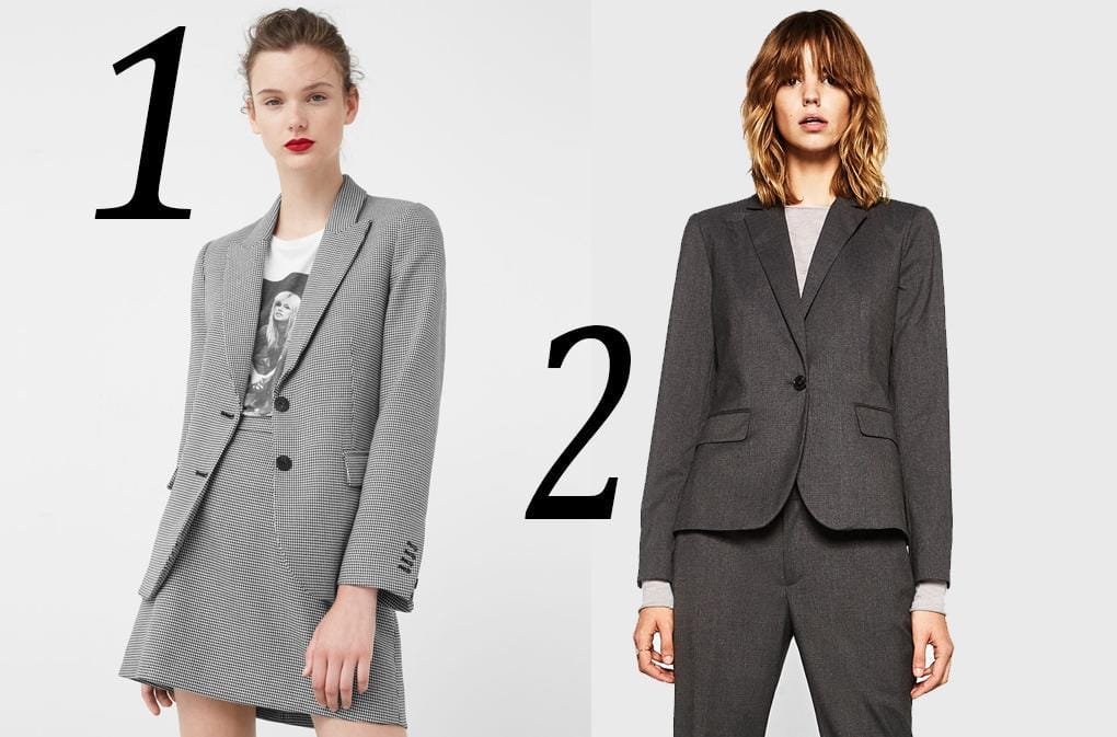 1. Single crepe blazer, ZARA, IDR 899,900 ; 2. Check suit blazer, Mango, IDR 999,000