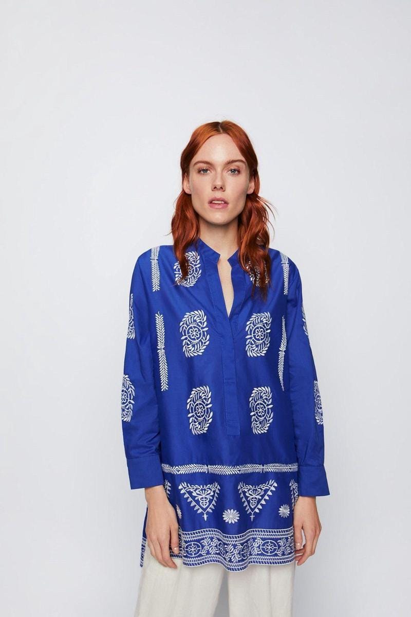 Blouse with contrast embroidery, ZARA, IDR 659,900