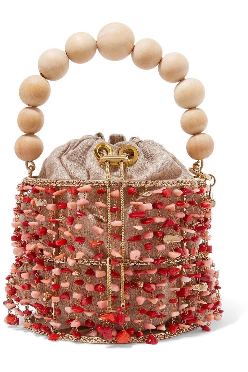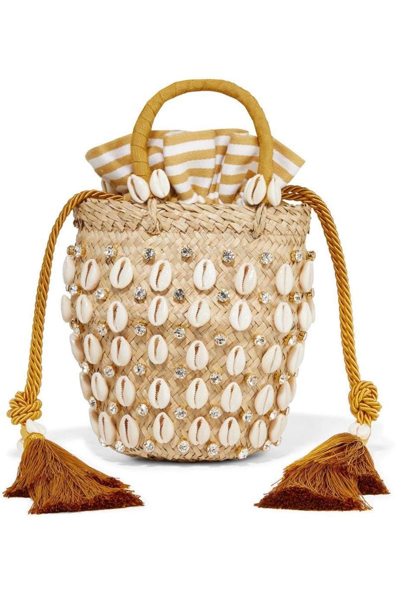 +Le Ninè Riviera mini tasseled embellished raffia and canvas tote, Aquazzura, $555
