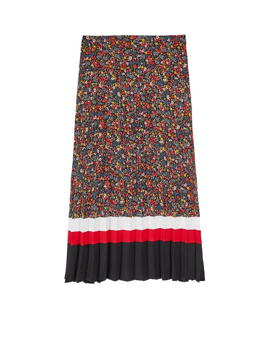 Pleated skirt with a striped and floral print, Stradivarius, IDR 189,900