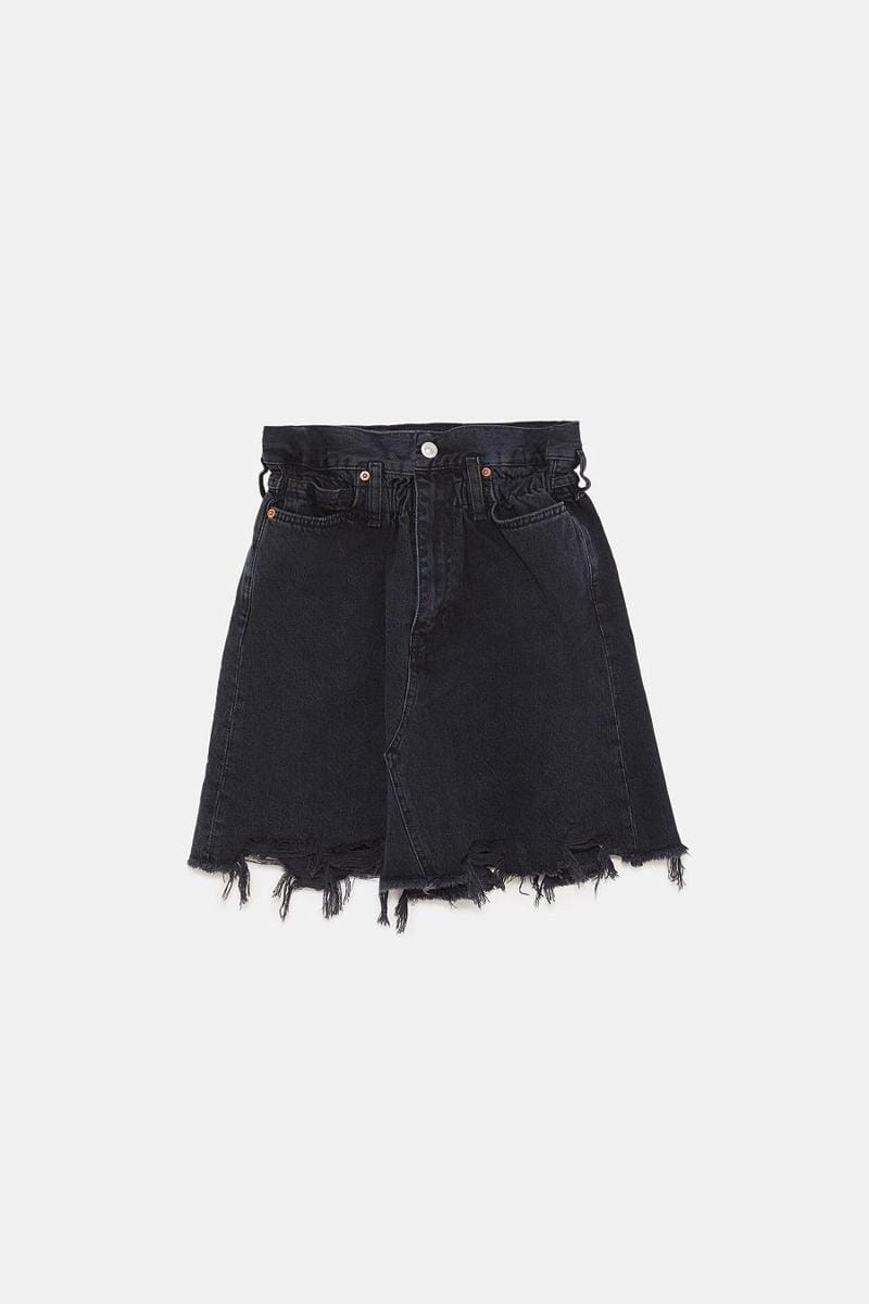 Premium denim skirt with elastic waistband, ZARA, IDR 699,900