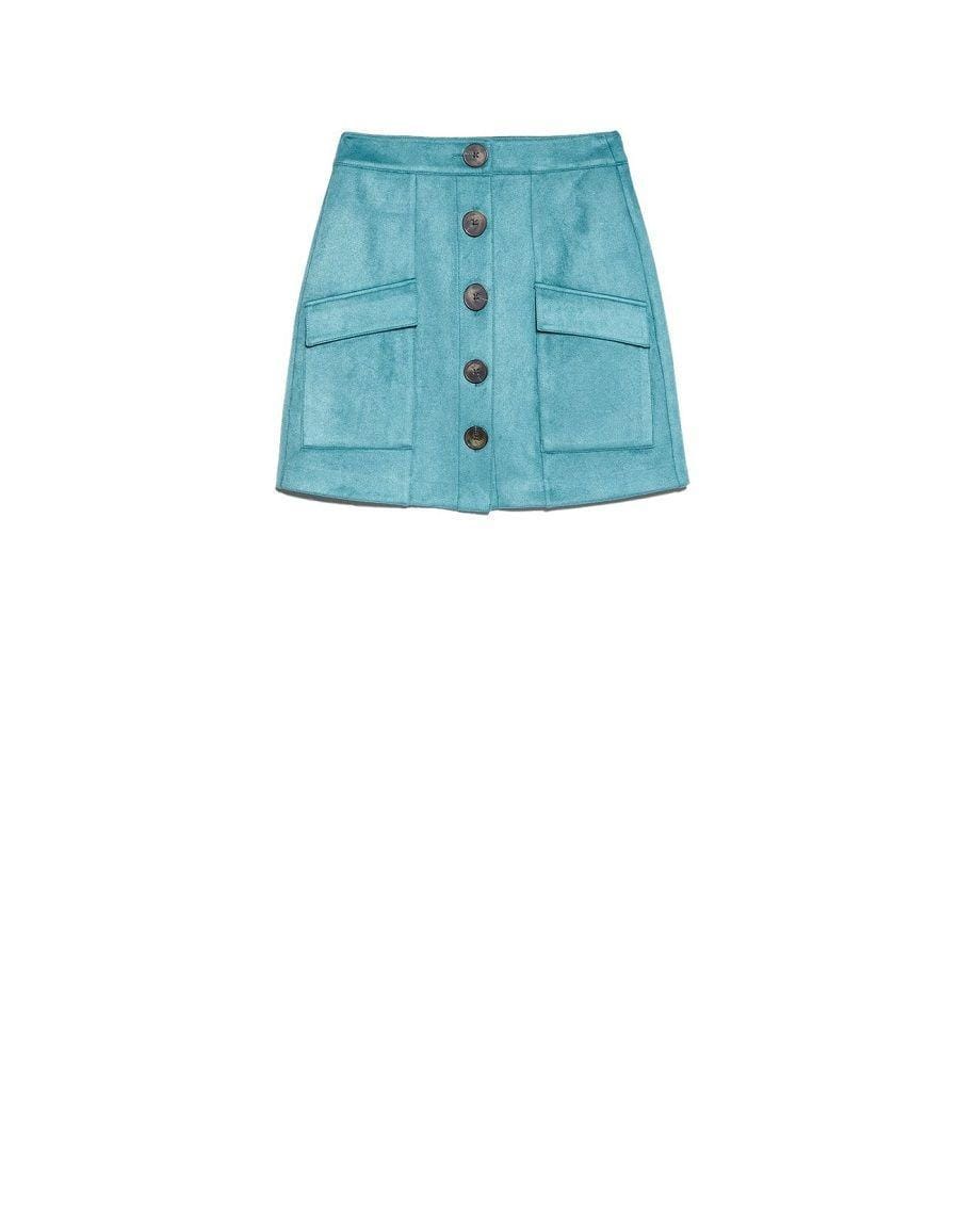 Faux suede skirt with buttons and pockets, Stradivarius, IDR 459,900