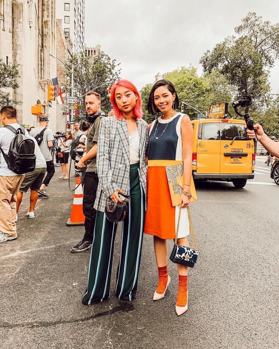 Ketika menghadiri show dari Tory Burch Olivia Lazuardy bertemu dengan salah satu fashion blogger kece, Margaret Zhang. Duo kece! Olivia Lazuardy tampak standout kenakan dress warna orange yang dikombinasikan dengan high heel + orange socks.