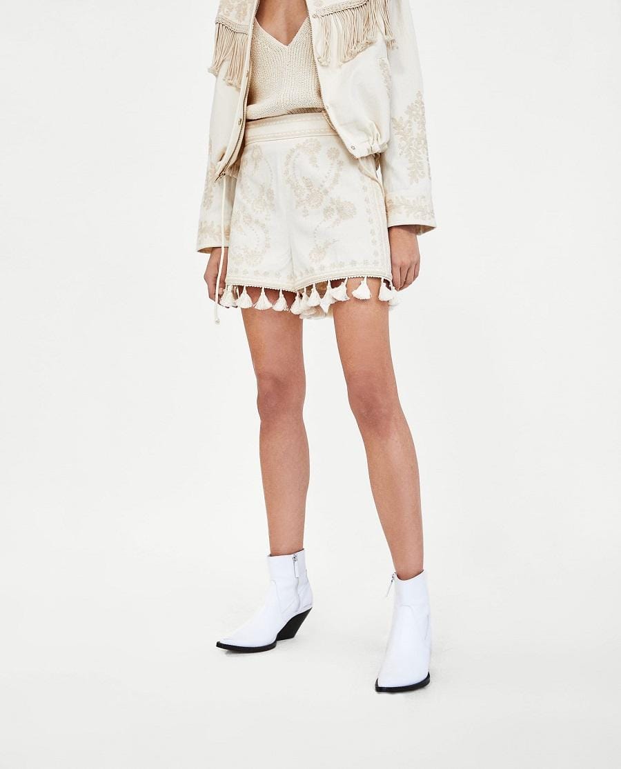 Embroidered short pants with tassels, ZARA, IDR 479,900