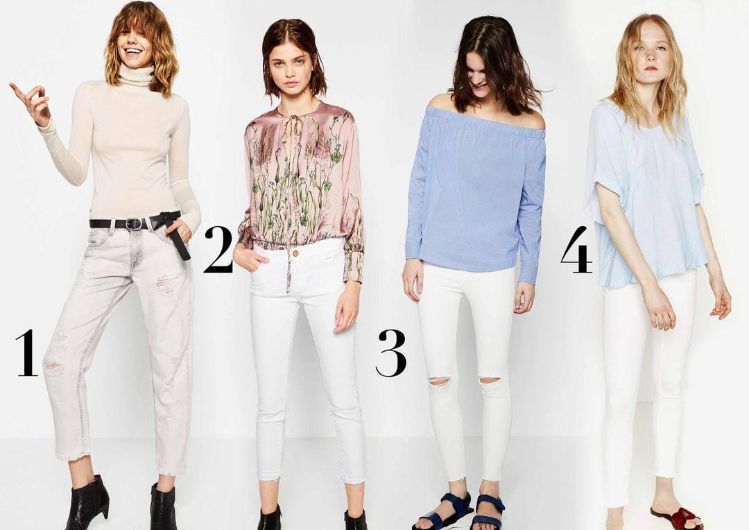 1. Ripped denim, ZARA, IDR 599,900; 2. White skinny cropped denim, ZARA, IDR 559,900; 3. Ripped skinny denim, ZARA, IDR 599,900; 4. Skinny denim, ZARA, IDR 599,900