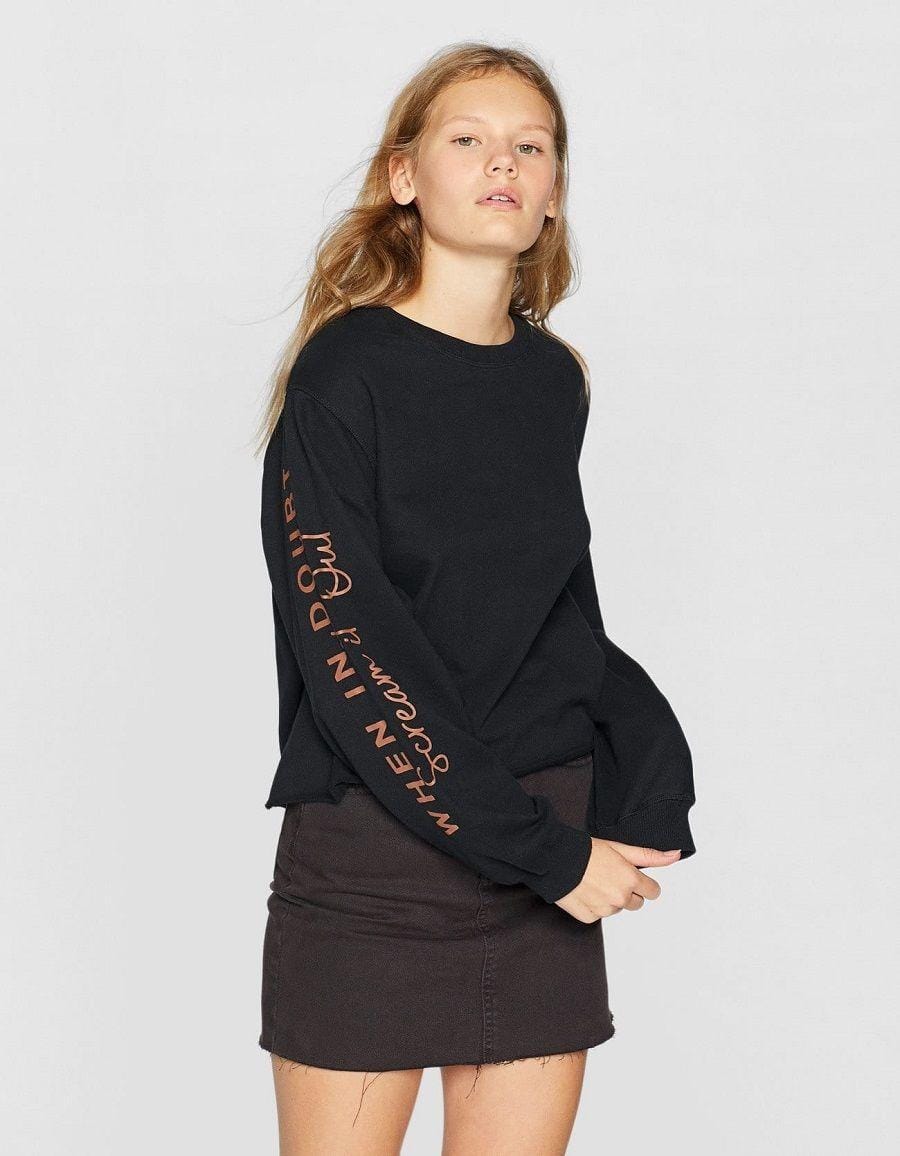 Washed effect sweatshirt with slogan, Stradivarius, IDR 379,900