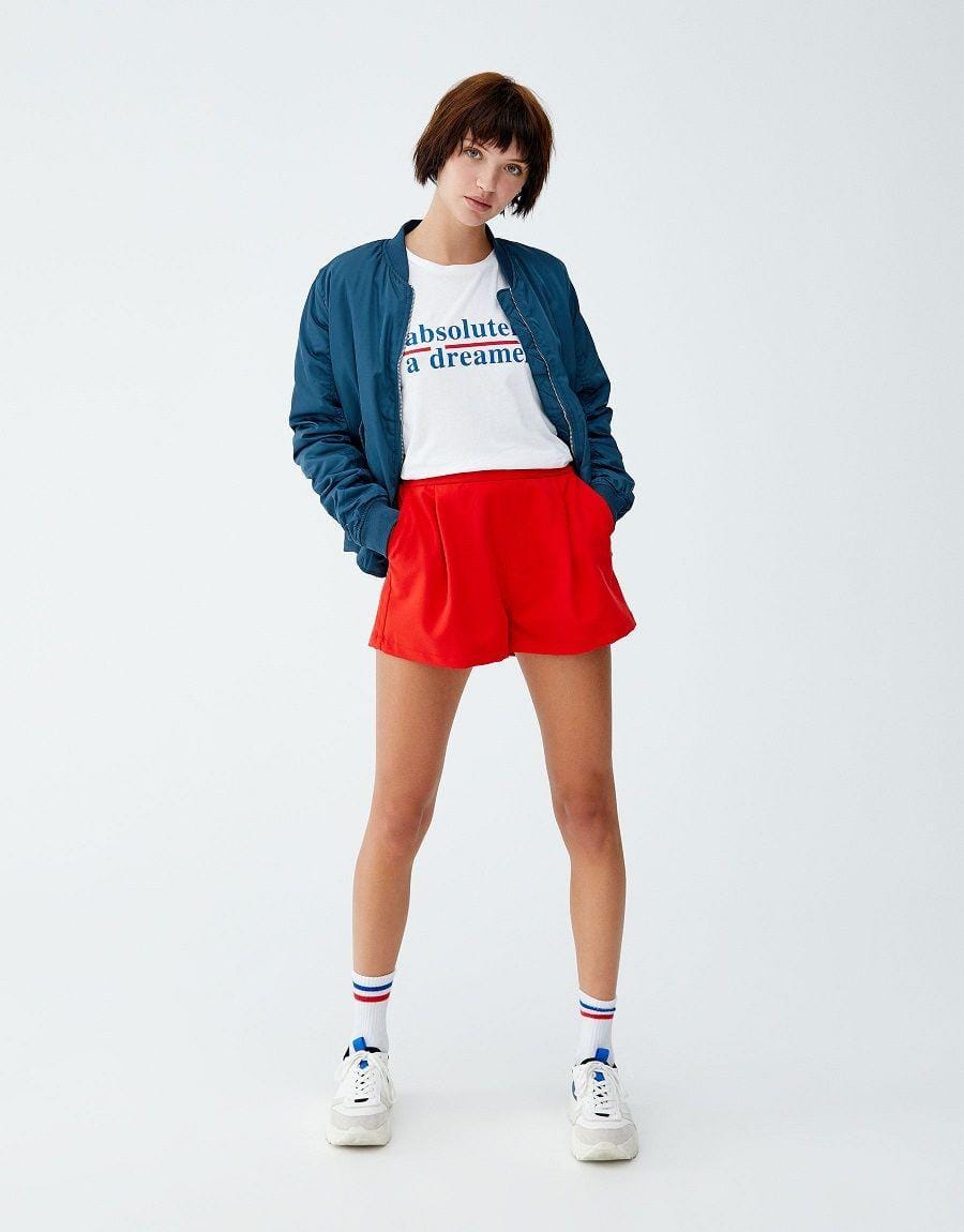 Printed slogan panel T-shirt, Bershka, IDR 109,900