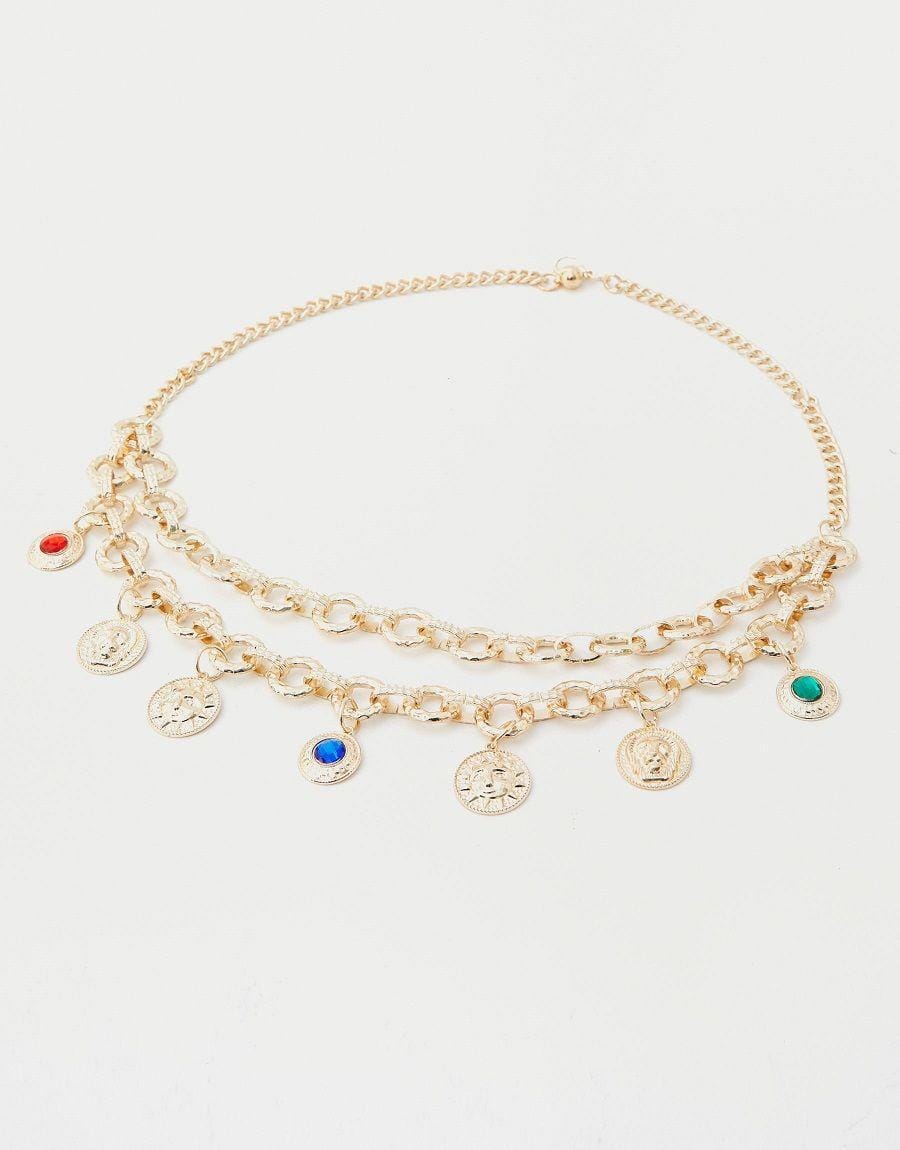 Rhinestone-embellished chain belt, Pull & Bear, IDR 359,900