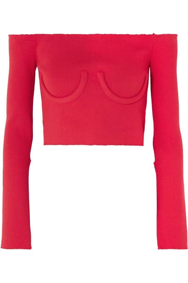 Cropped off-the-shoulder ribbed-knit sweater, Orseund Iris, $266
