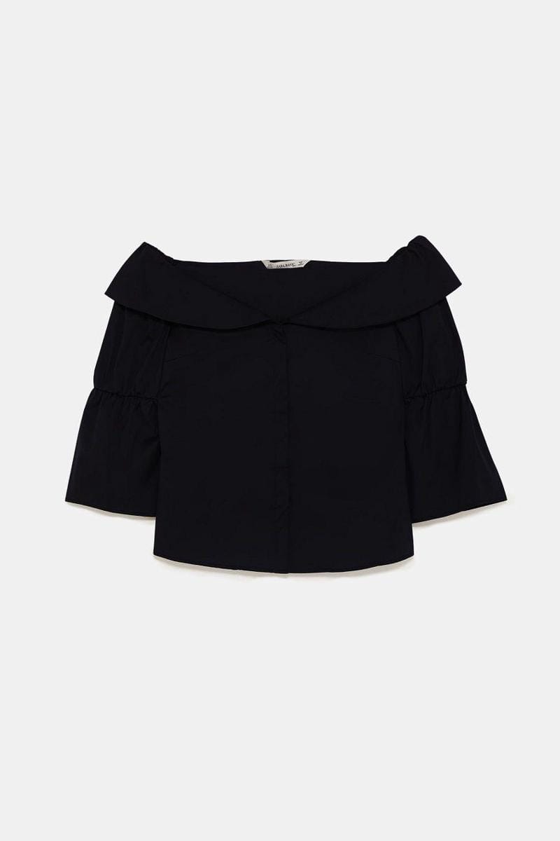 Off-the-shoulder poplin top, ZARA, IDR 599,900