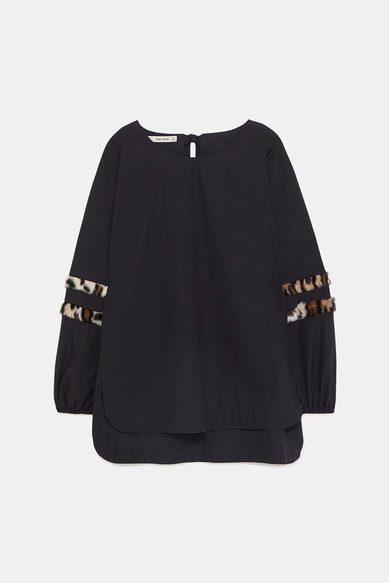 Poplin top with contrast faux fur detail, ZARA, IDR 599,900