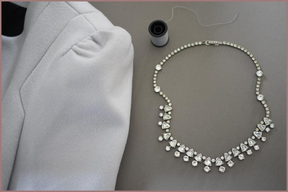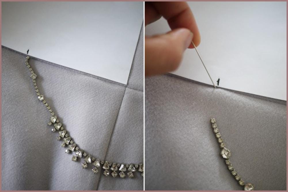 Kemudian setelah itu, ambil pulpen dan kertas dan letakan kalung kamu. Setelah itu beri tanda di kertas pada sisi kiri dan kanannya sebelum kamu menjahit.