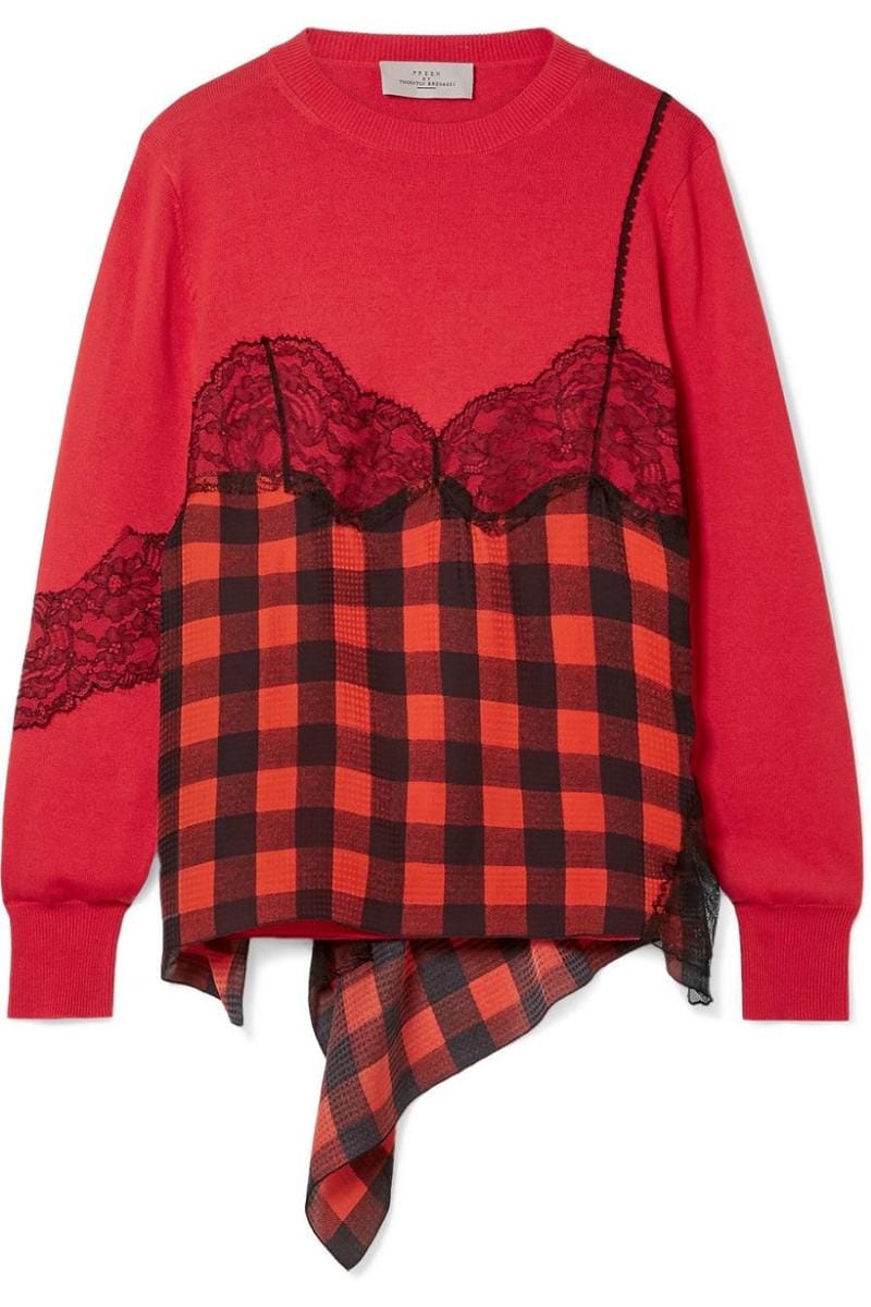 Gingham silk-jacquard and wool-blend sweater, Preen by Thornton Bregazzi, $1,094