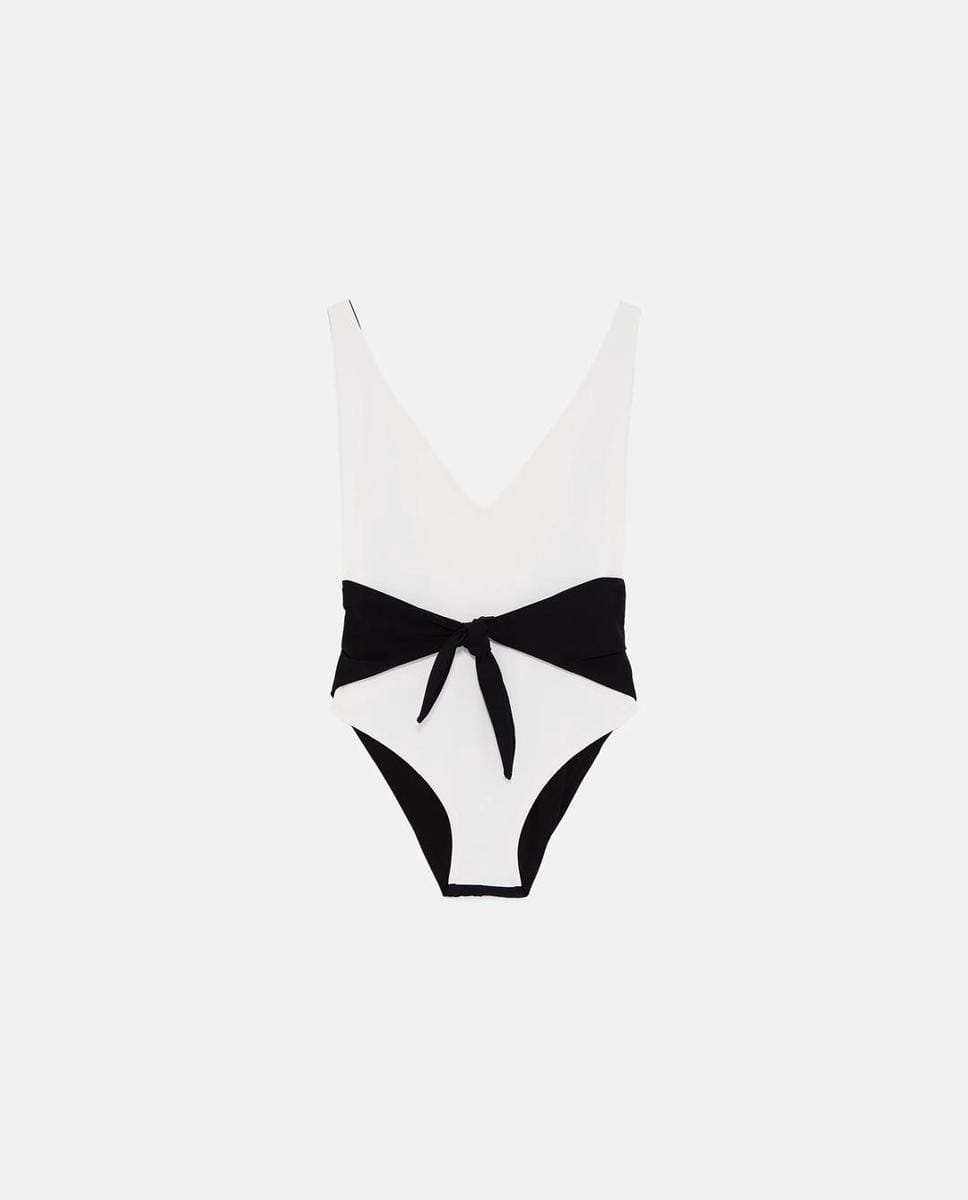 Knotted two-tone swimsuit, ZARA, IDR 229,900