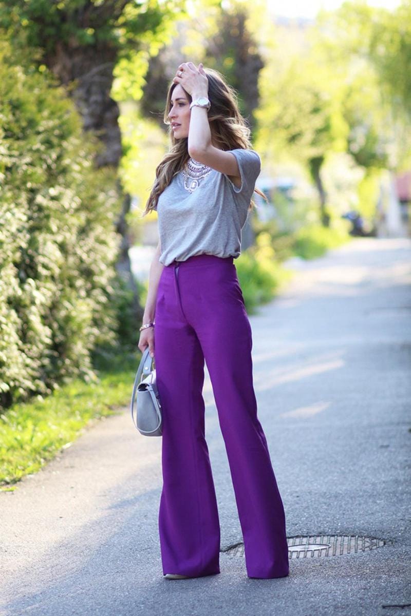 4. Bosan dengan denim atau celana hitam? Gunakan celana ungu yuk!