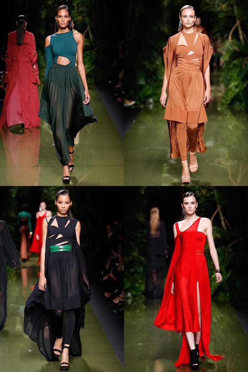 1. Mengurangi detail-detail glamor, Olivier Rousteing lebih menonjolkan aura seksi dengan aksen cut-outs yang terkesan sporty. Legging pun juga tampak menggantikan dress-dress mini yang biasa terlihat.