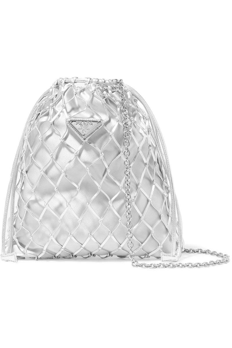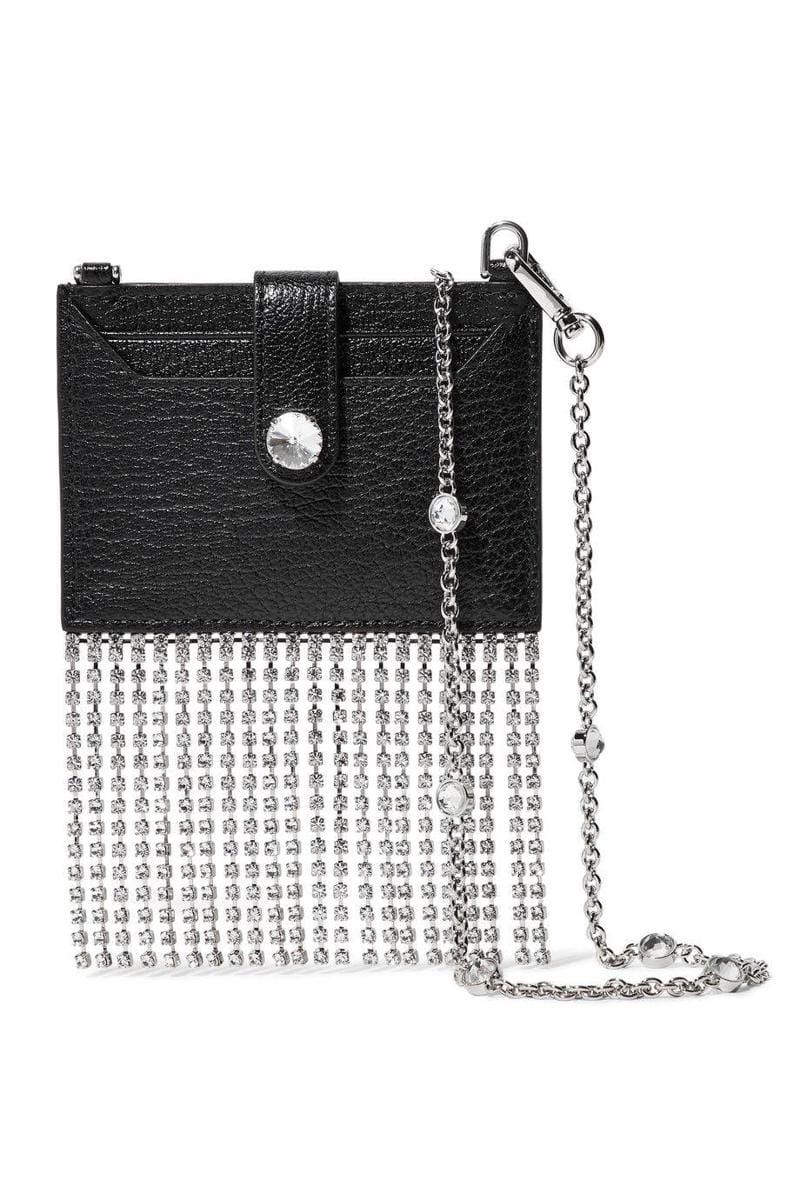 Madras crystal-embellished textured-leather shoulder bag, Miu Miu, $640