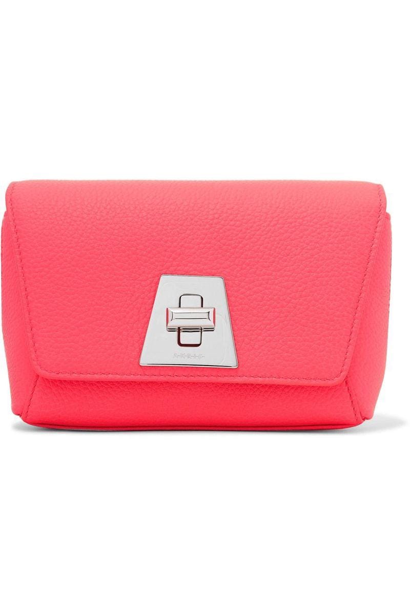 Anouk Little Day neon textured-leather clutch, Akris, $755