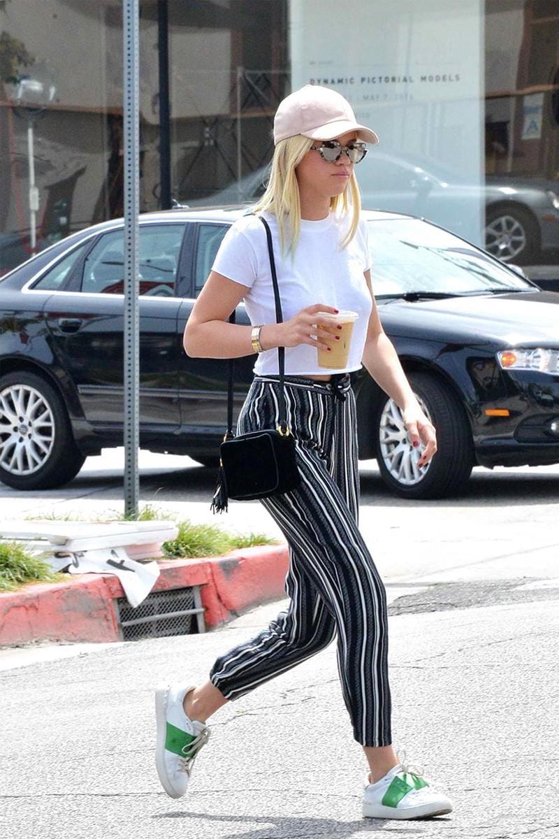 7. Sofia Richie memilih memberi sentuhan galore stripes yang super chic saat hang out.