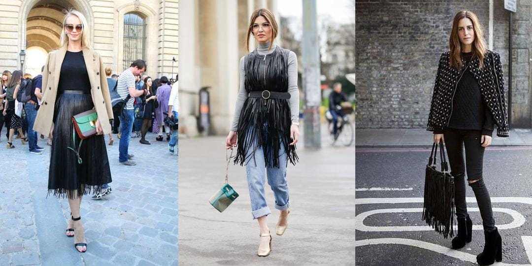 Don’t be intimidated by your fringe! Kamu harus tahu bahwa detail fringe tidak hanya untuk rock star. Koleksi bergaya bohemian ini bisa juga membawa nuansa feminin dan edgy. Kamu bisa memberi sentuhan gaya ini lewat jaket, clutch favorit bahkan rok midi kamu.