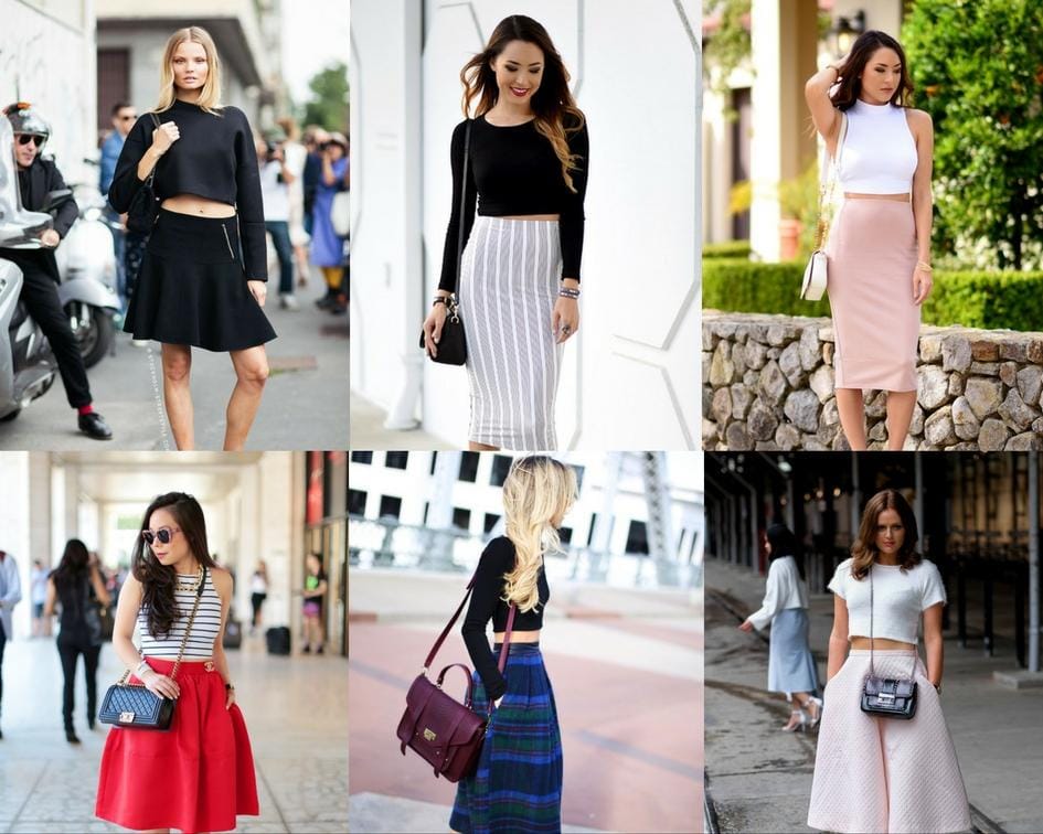 Kamu bisa seperti Kim Kardashian, dengan memadu padankan crop top kamu dengan skirt. Nggak harus bodycon skirt , kamu bisa menggunakan skirt highwaist panjang sebetis, yang akan membuat kamu tampak lebih elegan dan kasual, Bela.