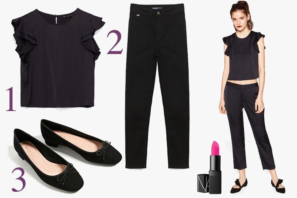 SEE NOW BUY NOW : 1. Glossy Frilled Topdetails, ZARA, IDR, 499,900 ; 2. High Waist Jeggings, ZARA, IDR 499,900 ; 3. Heeled Balerina, ZARA, IDR 399,900