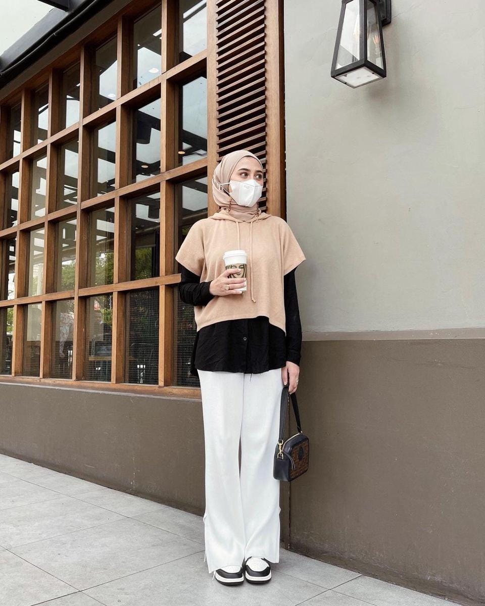 4. Saatnya coba gaya baru dengan <i>hoodie </i>lengan pendek! Anti ribet, pasangkan dengan kulot putih dan <i>sneakers </i>yang trendi.