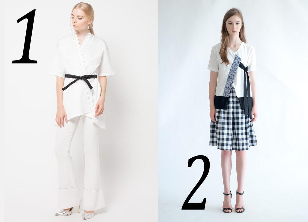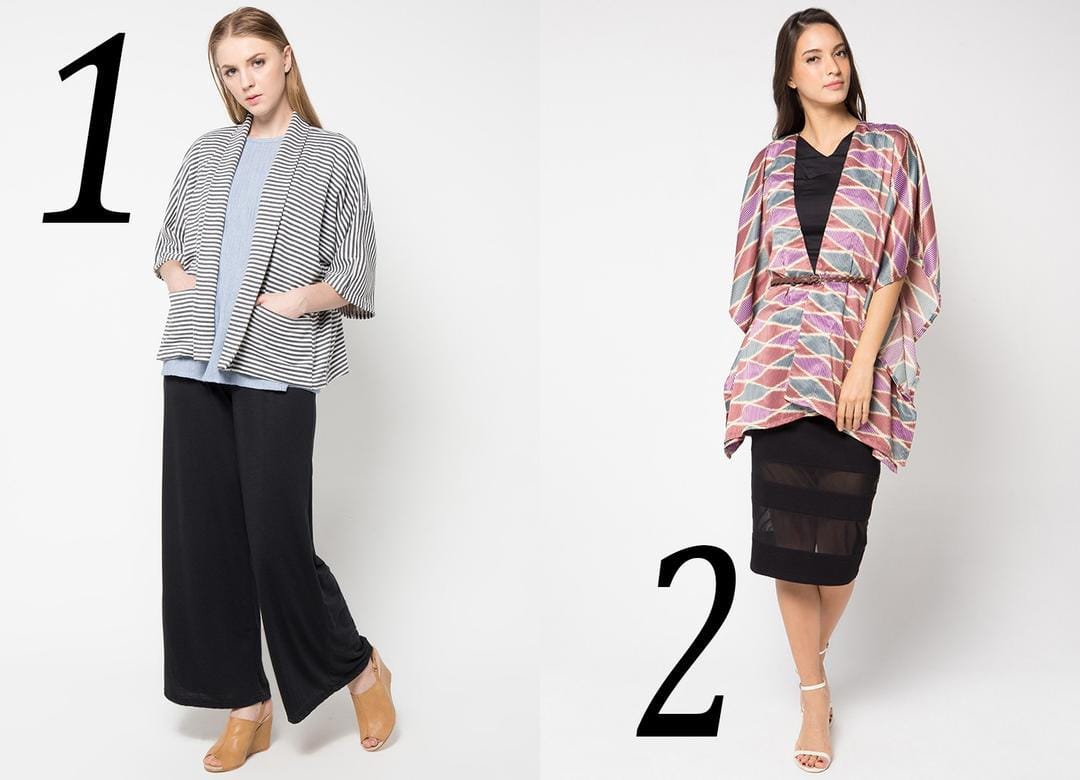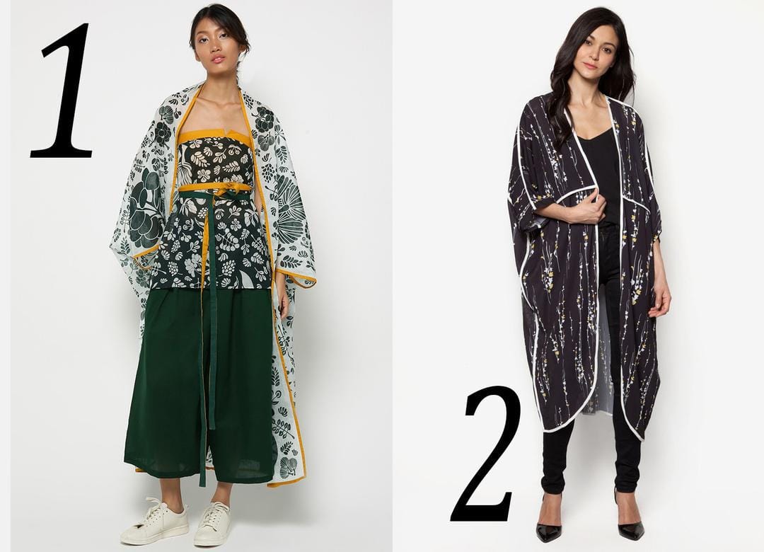 SEE NOW BUY NOW: 1. Kimono, Anokhi, IDR 289,000 ; 2. Kimono patterned, Anakara, IDR 157,500