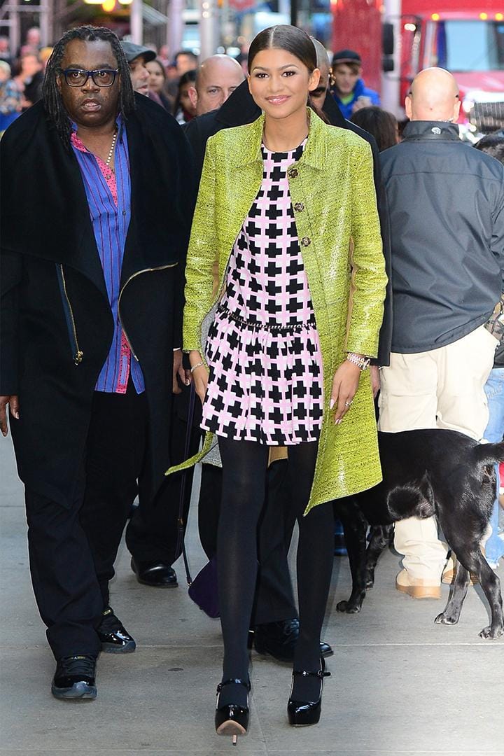 2. Zendaya terlihat sangat fashionable lewat sentuhan plaid matching set.