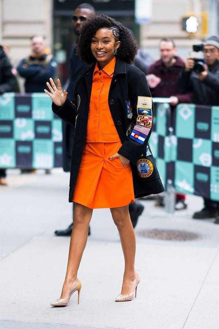 Orange merupakan statement color yang bisa membuat kulit sawo matang jadi lebih cemerlang. Kalau mau sedikit tone down bisa memadukan warna tegas ini dengan warna hitam yang netral.