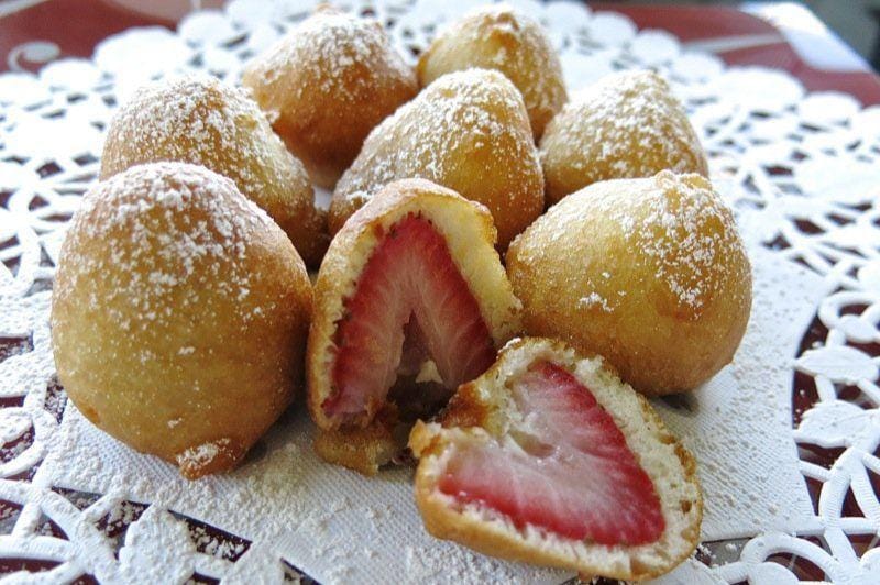Kalau kamu penyuka stroberi, cobalah celupkan buah berwarna merah ini dalam adonan pancake, kemudian menggorengnya dalam minyak panas. Rasanya? Enak banget, kok!