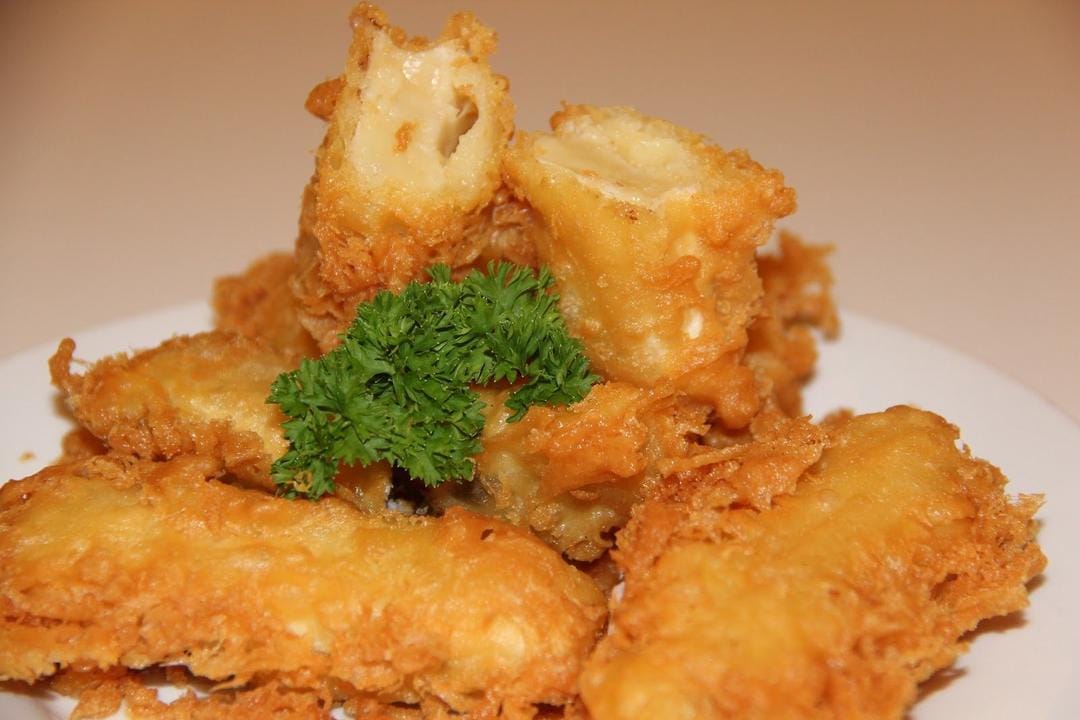 Gunakan tepung roti dan telur sebagai baluran dengan bumbu garam, merica, dan jintan. Untuk sausnya paling enak pakai mayones.