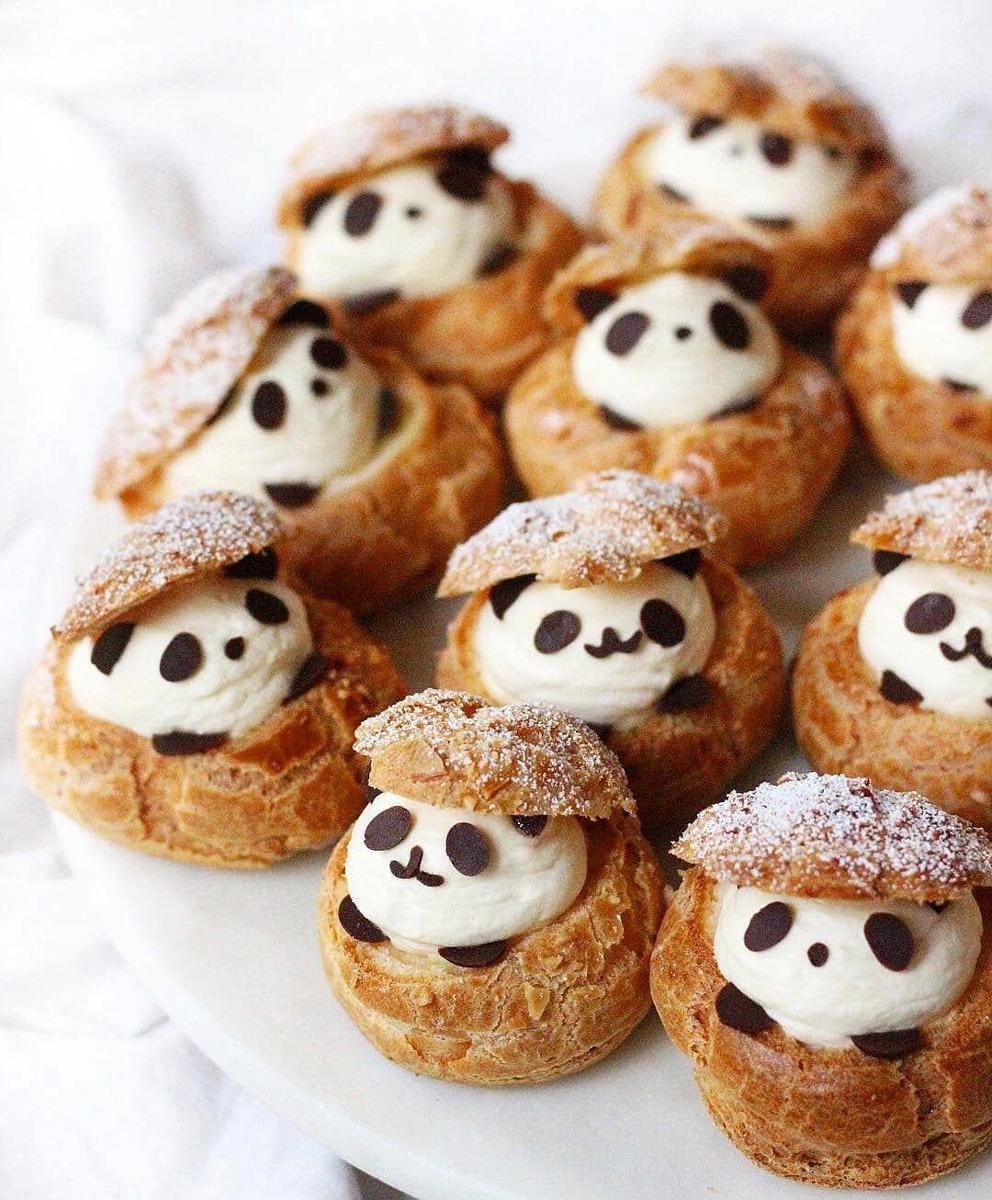 3. Panda yang lucu ini terlihat sembunyi di kue sus yang ditabur dengan gula halus.