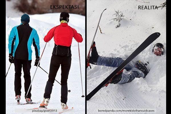 Lihat foto realita, masih tetap mau belajar main ski saat musim dingin? Nggak semudah yang kamu lihat di film lho!
