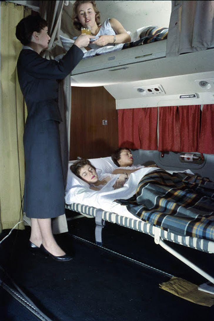 5. Bagaimana dengan maskapai KLM Royal Dutch Airlines, circa 1970 ini? Kira-kira aman nggak sih kalau ada kabin khusus tempat tidur penumpang seperti ini?