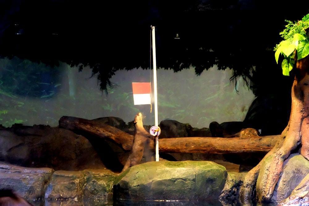 3. Dari berang-berang, kamu bisa meyaksikan beragam satwa konservasi di seluruh lokasi Jakarta Aquarium. Hingga akhirnya turun ke lantai bawah untuk menonton pengibaran bendera raksasa di dalam air. Lihat saja kemegahan sang merah putih, beriringan dengan aneka satwa laut yang hilir mudik seperti menambah keindahan peristiwa tersebut