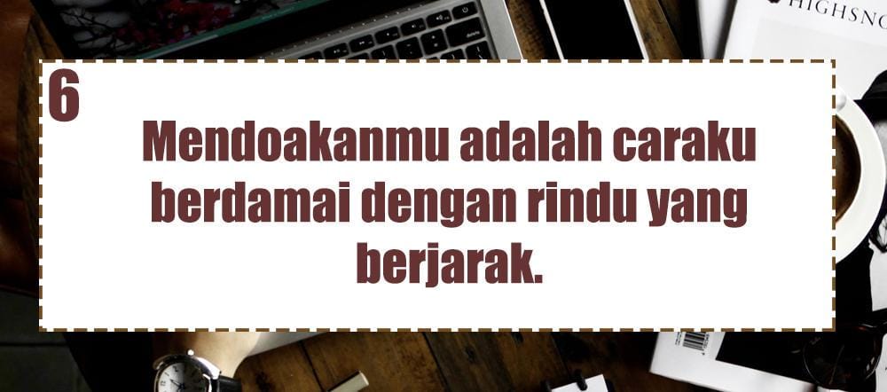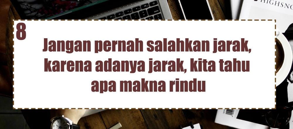 Menjalani hubungan Long Distance Relationship (LDR) di zaman sekarang tampaknya bukan suatu masalah besar. Apalagi di zaman canggih ini komunikasi jarak jauh dimudahkan dengan teknlogi canggih, cukup dengan menggunakan satu handphone, kamu nggak hanya bisa mendengar suaranya. Tapi juga kamu bisa melihat wajahnya lewat video call. That moments made us say 'thank you, technology', right? Tapi jika salah satu dari kamu mulai menyerah dengan hubungan kalian, mungkin saling mengirim quotes ini bisa membuat hubungan kalian kembali mesra dan kuat.