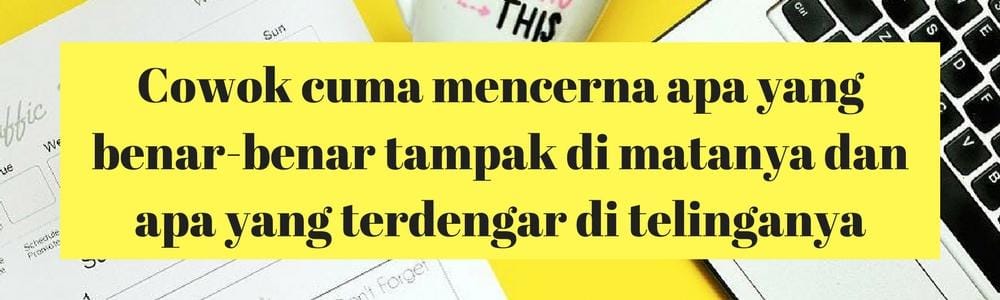 Misalnya saja cewek ngambek lalu bilang, "aku malas dekat-dekat kamu!" lalu dia benar menjauh. Padahal sebenarnya kamu hanya ingin bilang bahwa kamu marah, bukan ingin dia pergi. Ya, itu karena dia cuma mencerna apa yang terlihat dan terdengar sebagai fakta. Nggak heran kalau segala kode yang kamu lempar ke dia itu jarang bisa ia terima.