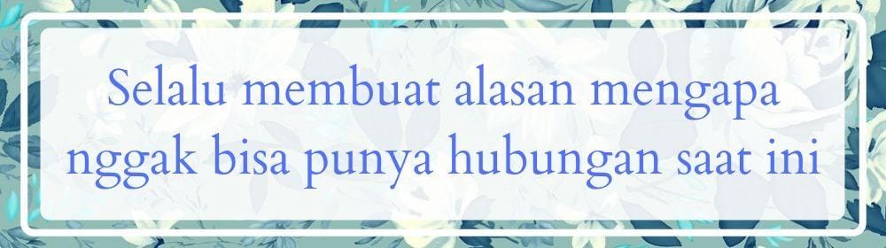 Laki-laki yang belum siap berkomitmen akan membuat banyak alasan mengapa kalian belum bisa menjalin hubungan saat ini. Mungkin saja karena dia harus pindah ke luar kota, ada keinginan yang belum tercapai, atau mungkin dia ingin fokus berkarier. Beberapa alasan itu mungkin memang benar, tapi mengapa harus menunggu keadaan yang nyaman untuk resmi menjadi pacar? Pada kenyataannya, hubungan justru bisa semakin kuat ketika kalian bisa saling mendukung di masa-masa sulit.