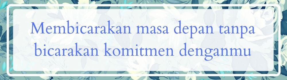 Dia sering membicarakan masa depan dan membayangkan kalian akan bersatu nantinya, seakan memberikanmu harapan yang besar. Tapi di sisi lain, dia juga nggak pernah memintamu menjadi pendamping hidupnya. Dengan kata lain, dia hanya memberikan angan-angan tanpa pernah mengajak berkomitmen.