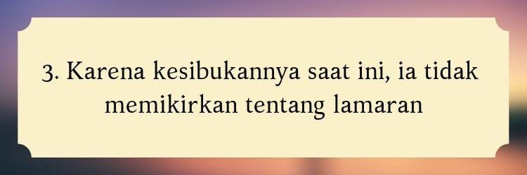 Kalau alasan yang satu ini kamu disarankan nggak boleh memaksanya untuk segera melamar kamu ya, karena setiap orang pasti sudah mempunyai daftar hidupya masing-masing yang akan ia jalani sebelum melakukan pernikahan. Bisa saja mimpi pacar kamu itu nantinya bermanfaat ketika kamu akhirnya menjadi pasangan suami istri dengan dia. Sekali lagi jangan paksa dia ya.