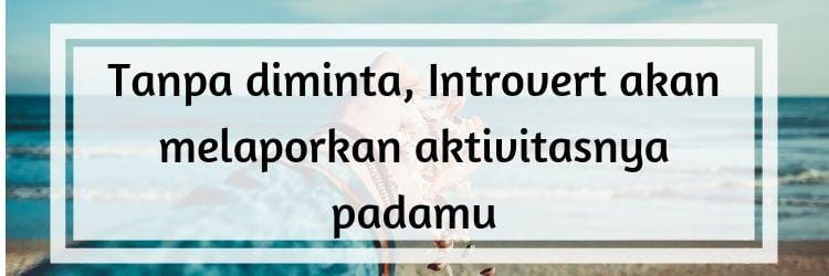 Orang introvert ini jarang sekali berbagi informasi dengan orang lain. Hal tersebut dikarenakan mereka kesulitan untuk percaya pada orang. Jika seorang introvert sudah nyaman padamu, ia akan melaporkan aktivitasnya tanpa kamu minta.
