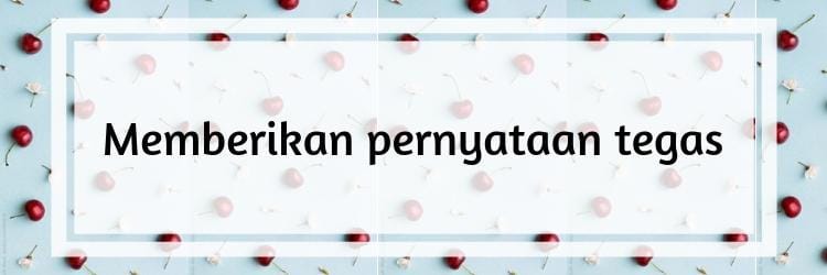 Pernyataan tegas ini maksudnya adalah sikap kita yang menunjukkan bahwa pasanganmu adalah orang yang penting bagimu dan menjadikan dia sebagai salah satu prioritas dalam hidupmu. Hal yang bisa kamu tunjukkan seperti mengambil cuti untuk liburan dengannya atau meluangkan waktu untuknya. Pernyataan secara lisan bahwa dia penting bagimu pun perlu diungkapkan secara langsung.