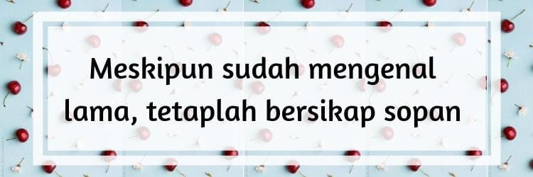 Kadang karena sudah mengenal lama, kita jadi mengesampingkan sopan santun terhadap orang terdekat kita. Nggak seperti awal-awal pendekatan, kita sangat menjaga sikap serta image di hadapan pasangan. Padahal, sikap sopan merupakan salah satu tanda bahwa kita menghargai dan menghormatinya. Banyak pasangan yang mengakhiri hubungannya dengan alasan 'kamu sudah berubah'. Tetaplah jaga sikapmu meskipun kalian sudah saling mengenal lama. Meskipun dia bisa menerimamu apa adanya, nggak ada salahnya kita tetap mempertahankan sikap positif yang membuatnya merasa dihargai.