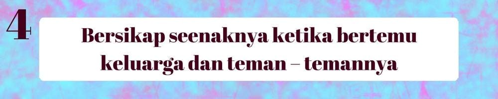 Bersikap buruk dan seenaknya di depan siapapun adalah hal yang tidak diperbolehkan jika kita ingin tetap hidup tenang di dunia ini. Apalagi jika kita ada di depan keluarga dan teman – teman si dia. Bukan hanya dia yang berpikir mulai meninggalkanmu, keluarga dan teman – temannya pun akan bersikap sama yaitu menolak kehadiranmu.