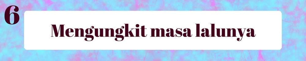 Setiap orang memiliki masa lalu, baik baik ataupun buruk. Si dia mungkin memiliki hubungan dengan seseorang di masa lalunya. Mengungkit masa lalunya hanya akan membuat hubunganmu degan si dia menjadi renggang dan berpotensi membuat dia akan mulai membuat jarak denganmu.