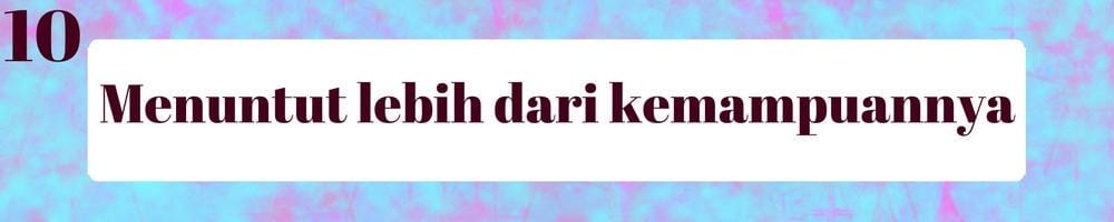 Setiap orang ingin melakukan yang terbaik untuk orang yang disayanginya, bahkan rela bekerja keras dan mencurahkan segenap tenaga dan energi agar pasangannya senang. Namun terlalu menuntut banyak hal di luar batas kemampuan akan membuat si dia berpikir dua kali untuk terus bersamamu.