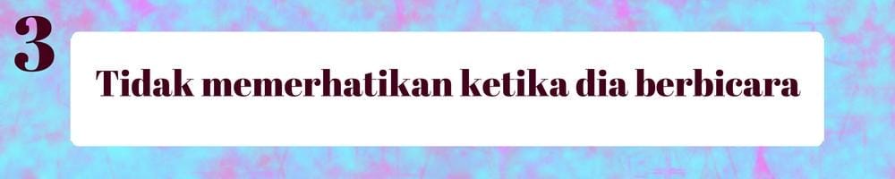 Ketika bersamanya, hanya kamu yang asyik berbicara sendiri tanpa memberi kesempatan untuknya bercerita tentang dirinya dan kehidupannya. Kalau kamu selalu seperti itu, praktis akan membuat dia lama-lama mulai menjauh darimu. Lakukan hal ini terus jika kamu ingin cepat kehilangan dirinya.