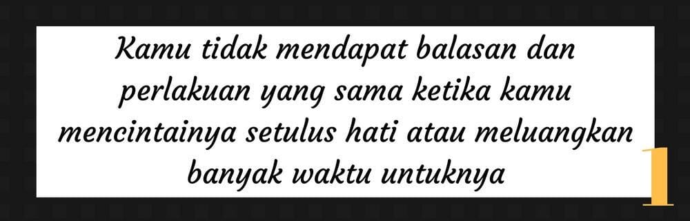 Ada sebuah kutipan yang berbunyi “Life is like a box of chocolates. You never know what you’re going to get.” Menjalin hubungan dengan orang yang salah bukanlah keinginanmu sejak awal. Namun yang terpenting adalah bagaimana kamu menyikapi kondisi tersebut dengan mempertimbangkan waktu dan masa depanmu.