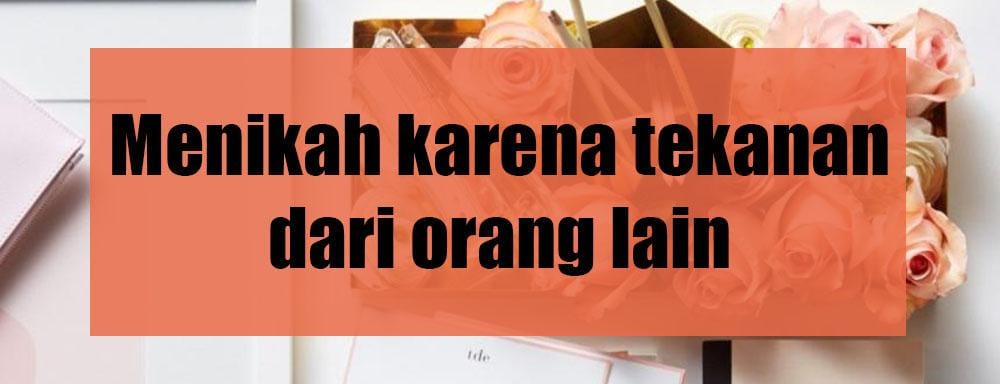 Jangan pernah menikah karena tekanan dari orang tua, sindiran kerabat dan teman-teman, atau karena paksaan orangtua si dia. Menikah seharusnya karena kalian sudah merasa ini adalah waktunya dan karena kalian sudah siap.